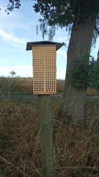 Seit Mitte Juli nehme ich mit einem speziellen Insektenhotel an einem bundesweiten Wildbienen Monitoring teil. Diese Nisthilfe für Wildbienen sind so konzipiert, das die Laven und Eier der Wildbienen monatlich untersucht werden können, ohne die Nester zu zerstören. Die Gänge sind mit einer Folie abgesperrt, so dass in die Zellen reingeschaut werden kann. Auch ist dann ersichtlich welche Zellen von Parasiten befallen werden. Als Imker finde ich diese Art der Forschung sehr interessant.